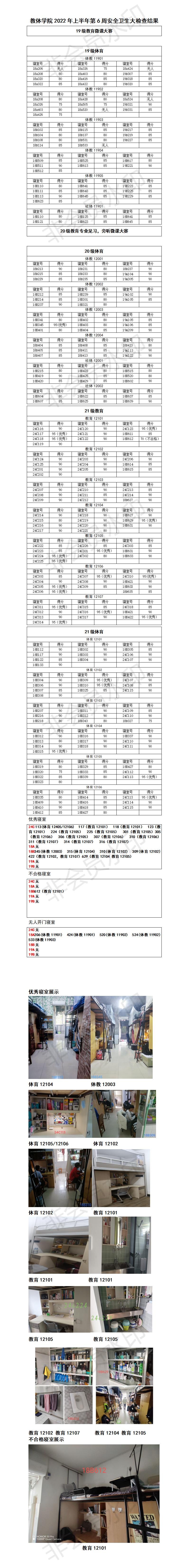 教体学院2022年上半年第6周安全卫生大检查结果