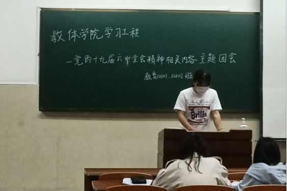 (贺琴/文 谭秀骏/摄)4月12日晚上8:30,为深入学习党的十九届六中全会精神,教育12101团支部联合教育12102团支部组织的学习工程团会在东校区12教503顺利召开,本次团会由1班团支书贺琴和2班团支书方苗主持。