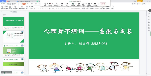 (通讯员张紫宇)为进一步了解大学生心理健康,帮助学生缓解压力,积极应对成长中的挫折,提升心理骨干能力,4月22日至29日,球王会体育平台网页通过线上线上方式,开展了以“应激与成长”为主题的心理骨干培训,全院500多名心理骨干参与了培训,培训由学院心理专干顾志辉老师和心育部部长田凤婷主讲。