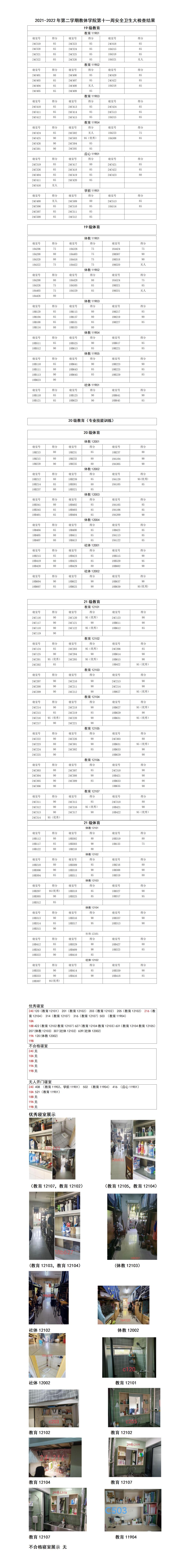 2021-2022年第二学期教体学院第十一周安全卫生大检查结果