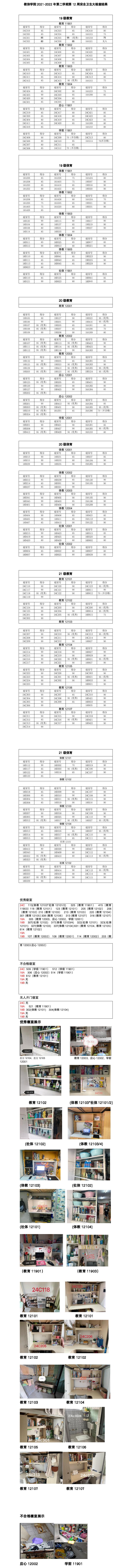 2021-2022年第二学期教体学院第十二周安全卫生大检查结果