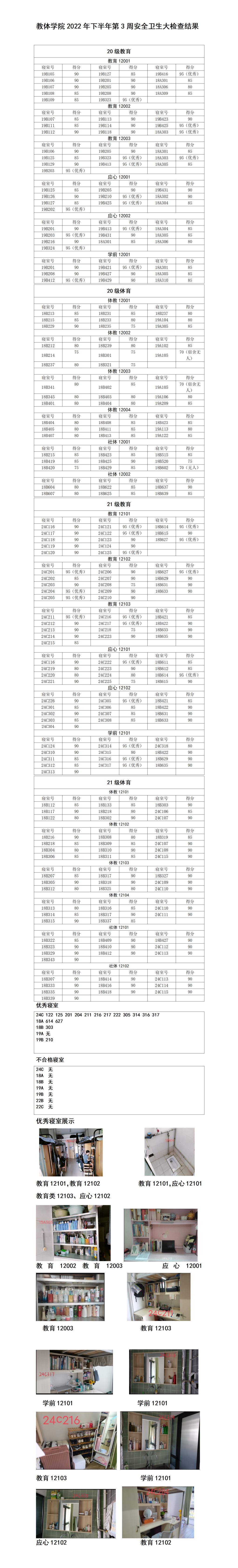 教体学院2022年下半年第3周安全卫生大检查结果