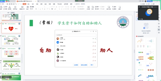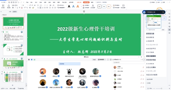 (通讯员:李璐何烨)为加强心理骨干对工作的认知,调动心理骨干工作积极性,帮助同学们保持积极阳光的心态,2022年11月3日下午四点,球王会体育平台网页心育部开展了线上心理骨干培训讲座。本次培训由辅导员顾志辉老师担任主讲人,教体学院22级全体心理骨干参加此次会议。