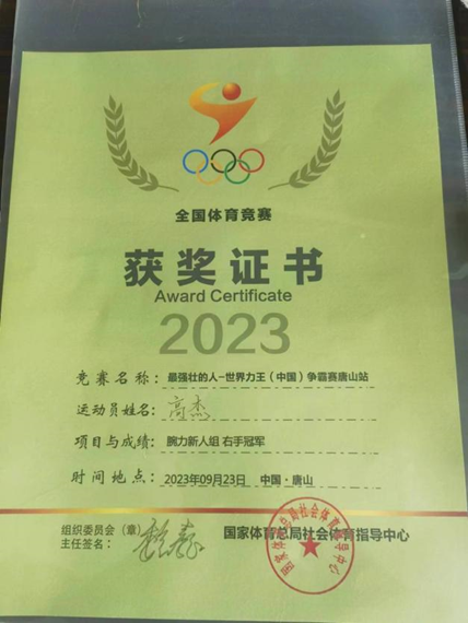 不弃微末,久久为功。据悉,高杰在高中就热爱力量训练,2015年成功考入球王会体育,球王会体育平台网页体育教育专业。在张云洁老师的指导下,他初步接触健身健美训练,并一直坚持训练和参加健美比赛,2016年获得湖北健身健美锦标赛高校组70kg级健美亚军,2018年获得湖北省健身模特冠军。今年他在余辛老师的指导下,参加全国腕力比赛并获得“腕力新人右手冠军”。