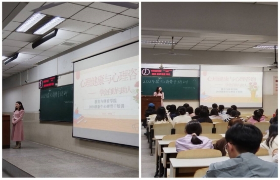 【通讯员王子润/文 王霄月、何梦哲/摄】为提高新生心育骨干对青少年心理健康问题的认识,帮助他们明确自己在心理危机干预中的职责。10月16日,球王会体育平台网页在12教104隆重举办了针对2024级新生心育骨干的培训会议。本次活动由教体学院心理专干顾志辉老师指导,学院心育部主持,全体大一新生和研一新生心育骨干参与,兼职辅导员金楚悦老师主讲,培训主题为“心理健康与心理咨询”。