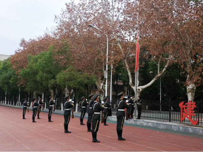 仪式开始,国旗护卫队昂首挺胸、步伐整齐,护送国旗进场,激昂的国歌声响起,鲜艳的五星红旗缓缓上升,随风飘扬。全体师生肃立,向国旗行注目礼,齐唱国歌。