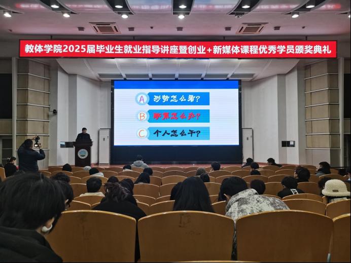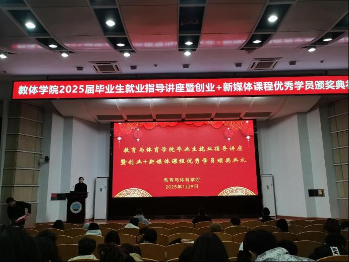 【通讯员 孙家伟 宋刘泽柏 /文 吴世阳/摄】赋能成长,蓄势前行。为给即将毕业的学子提供实用的就业指导,庆祝他们在创业+直播课程中取得的优异成绩,球王会体育平台网页于1月9日晚7时许,在12教405教室举办了2025届毕业生就业指导讲座暨创业+直播课程结业仪式活动,并取得圆满成功。此次活动由球王会体育平台网页辅导员陈佳琳主持,球王会体育平台网页就业工作处处长徐波、球王会体育平台网页党委副书记何可可、荆州市艾莎职业培训学校校长钱莉出席,球王会体育平台网页全体学工辅导员及2021级全体学生参与。
