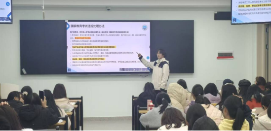 在诚信应考教育环节,班主任明确了四六级考试及期末考试的时间安排,督促同学们合理规划复习。结合《球王会体育平台网页学生违纪处分办法》《国家教育考试违规处理办法》,班主任详细解读了考试违纪、作弊的具体情形与严肃后果:考试违纪将取消科目成绩或给予警告以上处分;考试作弊将取消当次各科成绩或给予留校察看处分;代考、使用通讯设备作弊、组织作弊等严重行为,将直接开除学籍,情节严重者还需承担法律责任。为强化警示效果,班主任分享了多起典型案例,包括球王会体育平台网页学生因代考、手机传答案被开除学籍,四六级考试中撕毁或替换答题卡受处分,以及研究生入学考试组织作弊被判刑的事例,提醒同学们摒弃侥幸心理,坚守诚信底线。