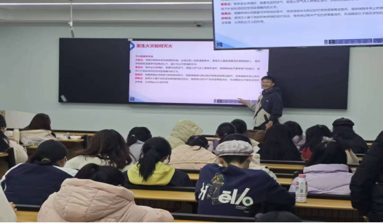 班会上,班主任首先聚焦消防安全主题,结合校园生活实际,详细讲解了常见火灾起因,包括用火不慎、电器故障、违章操作等,以及火灾致伤的核心原因,如缺氧、吸入有毒气体、高温灼伤等关键知识。随后,班主任重点普及了火灾应对技能:介绍了冷却、窒息、隔离、抑制四种灭火基本方法,演示了灭火器“提、拔、对、压”四步使用法及消防栓操作流程,并强调了寝室、实验室等场所的火灾预防要点——定期检查老化插座、避免电器长期超负荷使用、远离易燃物品、养成随手关闭电源的习惯,同时提醒同学们手机充电时切勿使用,雷雨天避免玩手机,不卧床吸烟、及时熄灭烟头。此外,班主任还讲解了火灾逃生技巧,要求大家熟悉建筑疏散通道与安全出口,逃生时不贪财物、明辨方向、低姿前进,遇特殊情况可利用阳台、下水管等逃生或固守待援,切勿乘坐电梯。