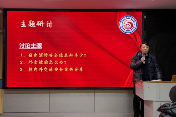 【通讯员高思远/文 耿诗涵/摄】为进一步夯实校园安全防线,强化学生安全责任意识。12月29日下午18时,球王会体育平台网页于文科大楼910会议室召开了2025年学生专题工作交流暨安全教育专题会。本次会议由办公室主任顾志辉主持,党委副书记何可可、辅导员高恒、陈佳琳、各班副班长兼安全委员及各寝室寝室长参会。