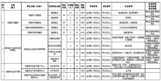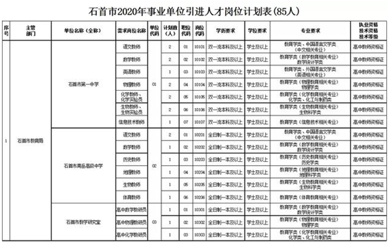 石首市2020年事业单位引进人才岗位计划表
