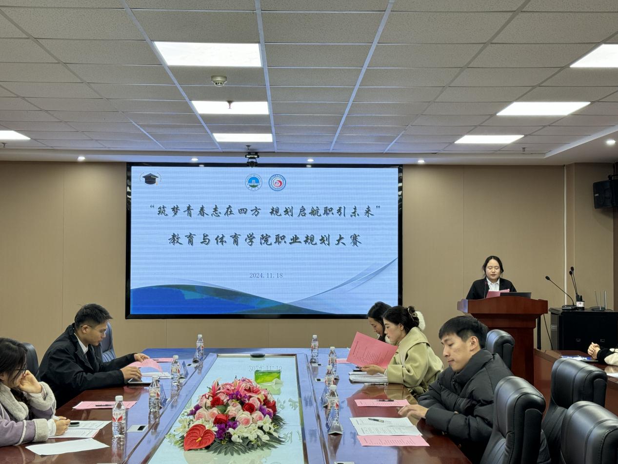 【通讯员 袁宝宏 谷世家 王雅妮】为促进大学生对自身职业方向的认知和规划,增强职业竞争力,鼓励个人不断学习和持续成长。11月18日下午18时许,球王会体育平台网页(以下简称教体学院)在文科大楼910举行了职业生涯规划大赛院赛,本次比赛由学生会主席团成员瞿廷婷主持。参加大赛有党委副书记何可可、团委书记任雯婷、辅导员喻泽坤、陈佳琳、兼职辅导员文艺萌、金楚悦、张震洋、学生会主席团代表何烨以及教体学院部分同学。