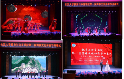 晚会伊始,舞龙舞狮专项队的精彩表演点燃了观众热情;体育舞蹈队通过优美的舞姿为大家展现了一幅唯美的画面,使全体师生领略了维也纳华尔兹无限魅力;紧接着,党委副书记李则俊老师致辞,精彩的发言引得台下阵阵掌声;教育系大一新生则通过朗诵《我与祖国共奋进》让全体师生重温中国的辉煌发展历程,展现了年轻学子的爱国情怀。在主持人介绍了博雅文化体育节子活动后,博雅文化体育节在院长张相乐老师洪亮的声音中开幕了。随后,一场健美操表演使全体师生赞叹不已、流连忘返。此后,一曲双人合唱的《夜空中最亮的星》表达了同学们的铿锵自信和对未来的无限希望。最后,本场晚会在由体育舞蹈专项带来的劲爆的拉丁舞表演中落下了帷幕。