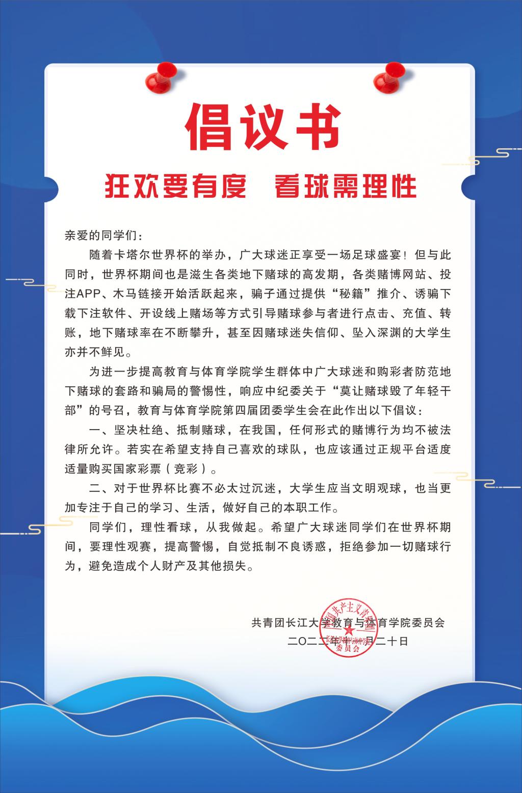 观赛要有度·看球需理性-- 教体学院理性观赛·拒绝赌球倡议书