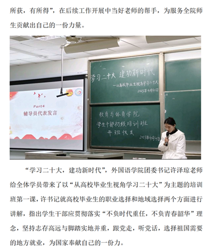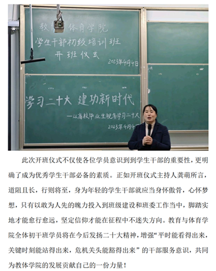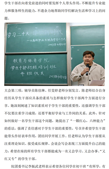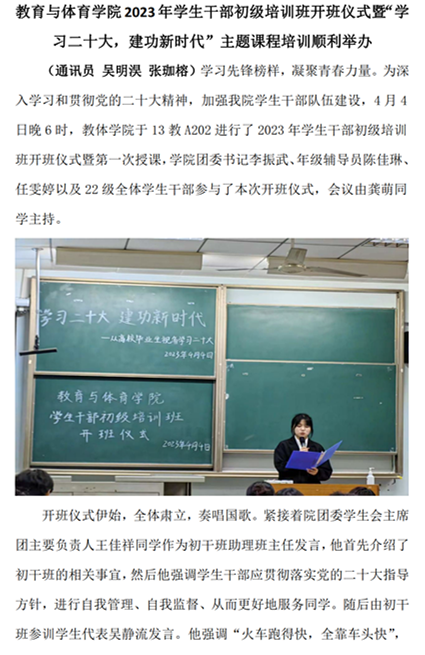 球王会体育平台网页2023年学生干部初级培训班开班仪式暨“学习二十大,建功新时代”主题课程培训顺利举办