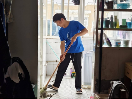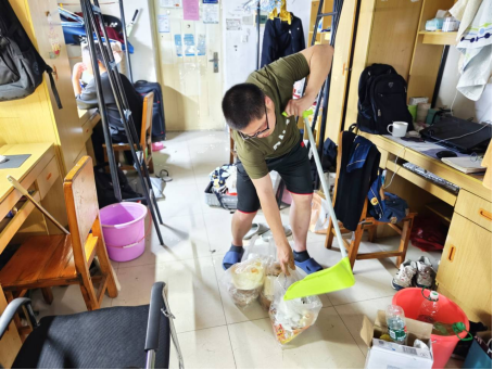 中午12时,志愿者们忙碌的身影出现在各个寝室。大家都积极投入到卫生大扫除中,纷纷拿起扫帚、拖把和抹布等清洁工具,帮助同学打扫寝室卫生。他们扫走寝室里角落的灰尘,擦去门窗和桌子上的污渍,按照寝室卫生标准摆放好物品,经过半个多小时的清扫,各个寝室都焕然一新。志愿者们用实际行动为宿舍清扫贡献了自己的一份力量,参加此次活动的成员张珈榕说:“这次大扫除很有意义,不仅让我们深入了解了寝室卫生的标准,还增进了同学之间的友谊,更坚定了我们为同学们服务的初心和使命。”