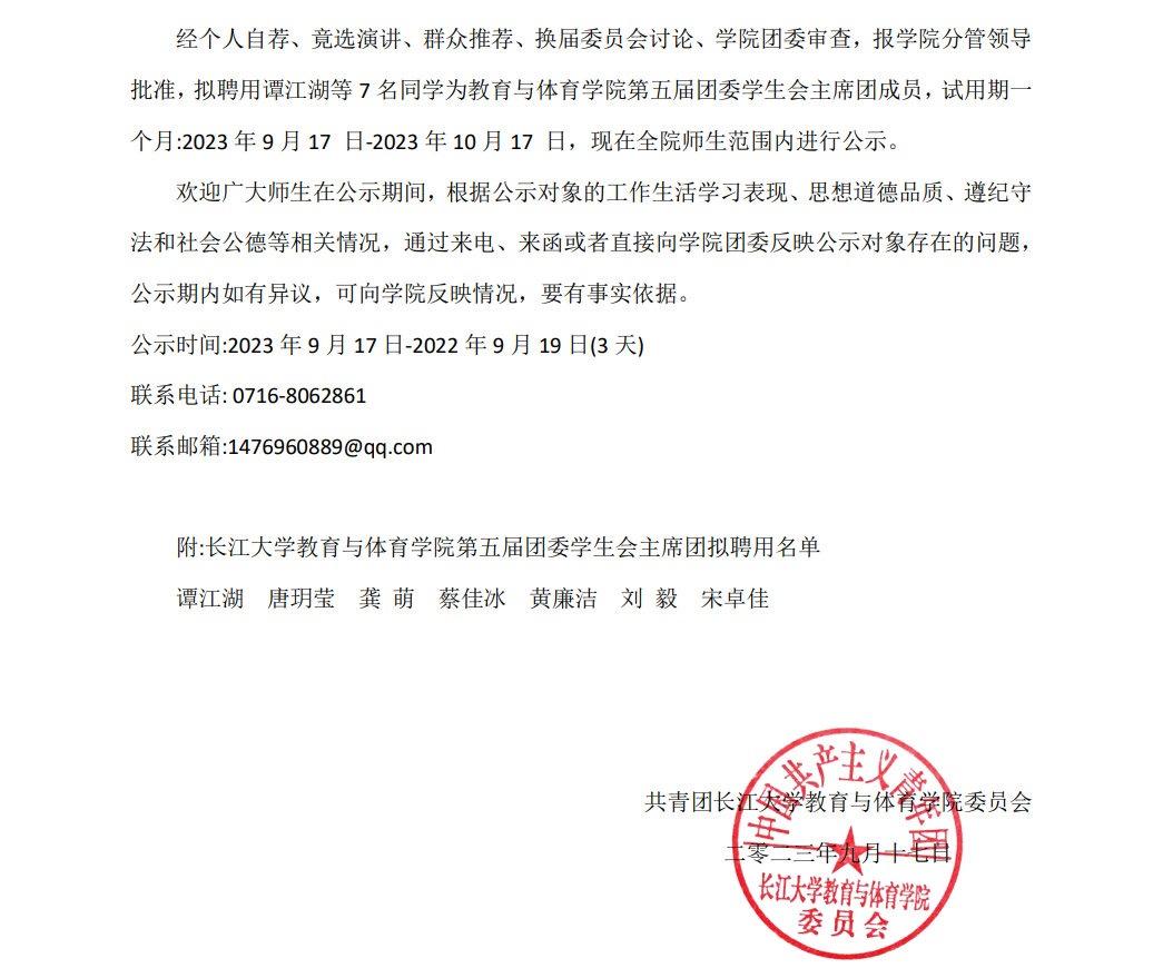 关于球王会体育,球王会体育平台网页第五届团委学生会部门负责人拟聘用名单的公示
