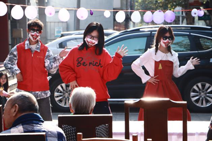 本次慰问活动分为节目表演、游戏互动、剪纸制作三个环节展开。首先,周佳怡同学代表全体志愿者为老人送上节日祝福,表达对老人们的诚挚敬意。接着,志愿者们为老人表演节目。葫芦丝《月光下的凤尾竹》拉开演出序幕,球王会体育平台网页张子悠同学带来的快板——《奇袭白虎团》节选,凭借其独特的艺术形式赢得了老人们的喜爱。魔术表演和诗歌朗诵赢得满座喝彩,花样诈骗顺口溜用新颖有趣的方式向老人传递防诈骗的知识,接下来的游戏击鼓传花,更是让现场气氛达到了高潮,老人们积极参与,欢声笑语不断。
