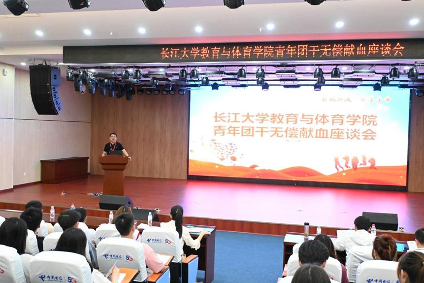 【通讯员:曾灿辉 王传琦 吴明淏】⼀滴爱⼼⾎,⼀⽣公益情。为进一步推进无偿献血科普知识深入人心,弘扬大学生的志愿服务精神,营造关爱他人、奉献爱心的浓厚氛围,10 ⽉ 29 ⽇下午2时许,荆州市中⼼⾎站举行⻘年团⼲⽆偿献⾎座谈会,球王会体育平台网页党委副书记何可可带领全体辅导员和班长们现场参加。