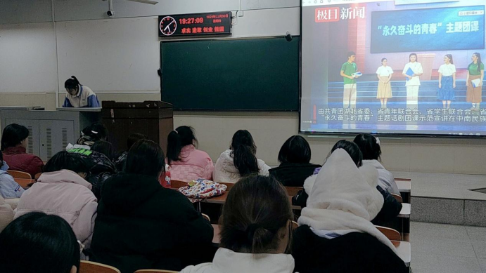 首先进行团课学习和主题教育。观看“永久奋斗的青春”主题话剧团课示范宣讲视频片段,认真学习党的二十大精神丰富内涵、团员和青年主题教育相关内容。“永久奋斗的青春”主题话剧团课是团省委以学习贯彻习近平新时代中国特色社会主义思想主题教育为契机,围绕青少年思想政治引领工作开展深入调研后,历经半年精心创作而成,引导青少年树立更坚实、更理性、更积极的奋斗观。引领广大青年为湖北建设全国构建新发展格局先行区贡献青春力量、展现青春担当。