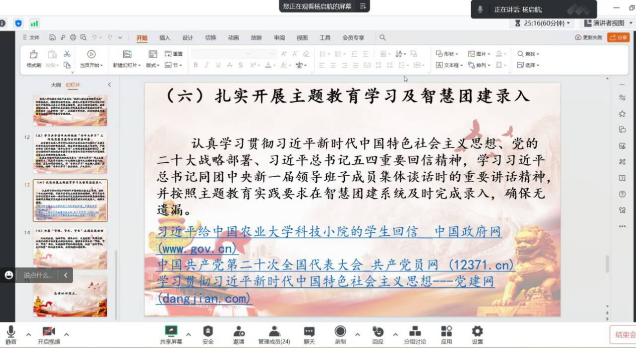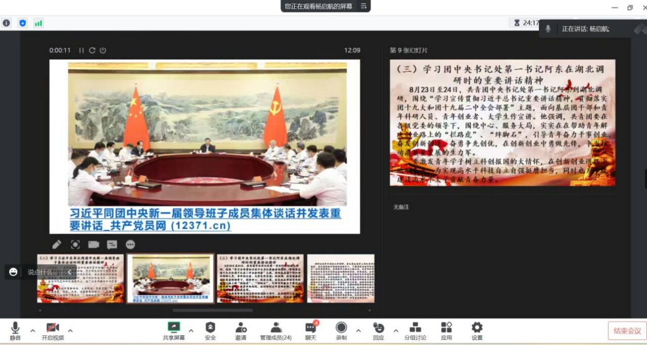 【通讯员 金楚悦】2024年3月15日至29日,球王会体育平台网页全体研究生开展了三月份政治理论学习。各班采用了线上与线下、集体学习与个人自主学习相结合的方式,由团支书进行组织,辅导员陈佳琳老师参与、督促学习。