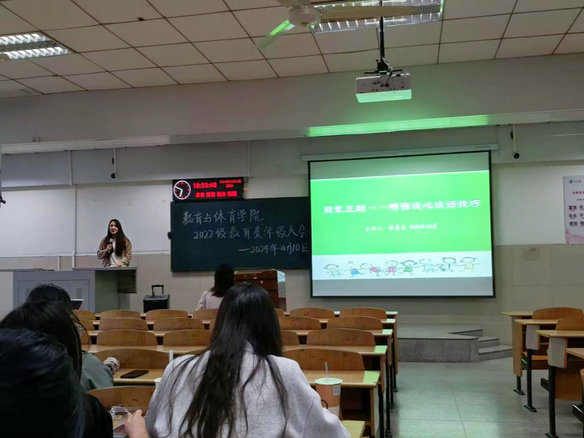 【通讯员 李键韬 徐有军 王传琦/文 刘濠淙/摄】思深方益远,谋定而后动。4月10日晚7时许,球王会体育平台网页(以下简称“教体学院”)于东校区12教402举行了22级教育类第一次年级大会。本次大会由辅导员任雯婷主持,22级教育类全体学生参加。