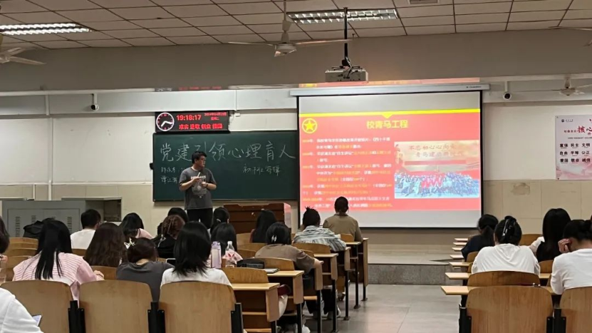 会议伊始,邹永东从青马班是什么、做什么、为什么和经验分享四个方面展开。从2006年开办至今,青马班已成功开办十六届,每年从全校优秀学生中遴选、培养100名左右的学员,至今,累计培养学员1600余名。零点起跑、事事争先;选择优秀、追求卓越;艰苦奋斗、报效祖国从未来和当前两个方面延伸,邹永东提出了青马工程的培养目标,通过一年实践锻炼培养和一年跟踪培养,培养青年马克思主义者接着,他详解了遴选条件和遴选流程,。随后,邹永东学长向同学们阐述了跟踪培养机制、“2+1”导师培养机制和“省、校、院”三级培养机制,让同学们充分了解到青马工程的卓越性、专业性和先进性。对于培养内容,邹永东学长详细通过“有”“有本领”“有担当”三个维度进行讲解,并举图片实例向同学们介绍“三早”等活动,一张张风采展,一幕幕小组照,展现了青马的魅力,促使同学们不断进步,追求卓越。聚是一团火,散是满天星。邹永东进一步展现了青马学员的个人成长,学习先进典型,凝聚奋进力量,优秀典型不断激励着同学们,给予同学们前进的动力。