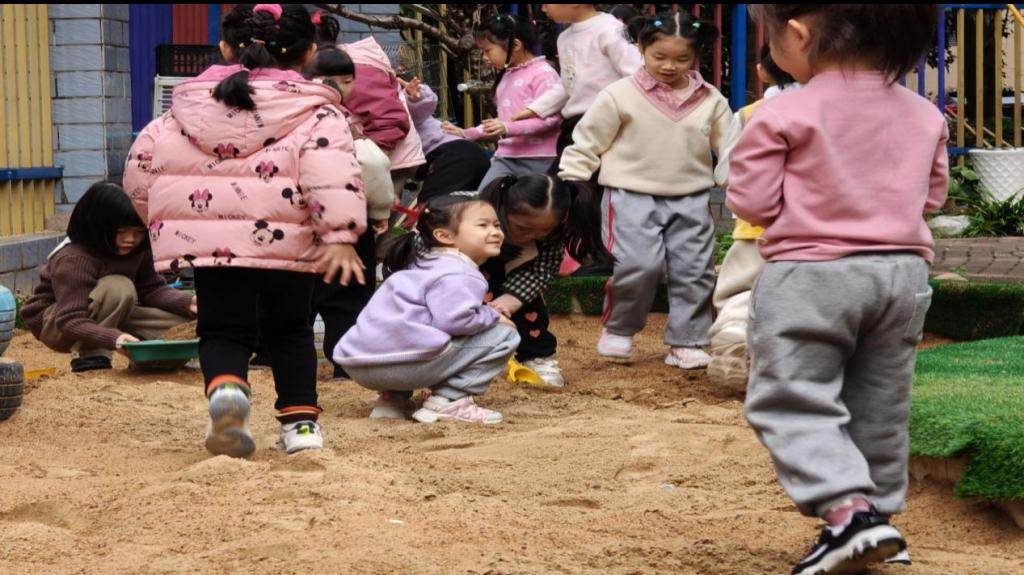 在孩子们相互拥抱和颁奖后,随之而来的就是最后的一场游戏--沙漠寻宝。游戏需要男生女生在一分钟的时间轮流在沙坑中寻找到被藏起来的六个小奖励。游戏开始了,抽签后女生率先进行寻宝,孩子们拿着小铲子不停的在沙坑挖呀挖,最后在一声声惊叹中挖到了三个,接着是男生进行寻宝,也接连找到两个,还有最后一个怎么也找不到,于是在女生的帮助下,小朋友们一起找到了最后一个奖励,大家通过自己的努力如愿以偿的获得了属于自己的小奖励。