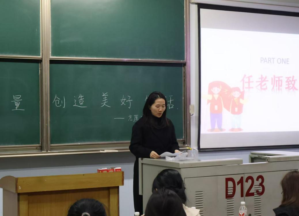 会议伊始,主持人详细解读了志愿服务精神的内涵与深远意义,参会师生对志愿服务有了更为深刻的理解。随后,任雯婷老师上台致辞,她表示,希望全体师生积极投身志愿服务,以实际行动践行奉献精神,在服务社会中实现自我价值。任老师激励广大青年,为社会的文明进步贡献青春力量,用情用心用力做好志愿服务。她的发言引发了台下听众的强烈共鸣,现场掌声雷动。