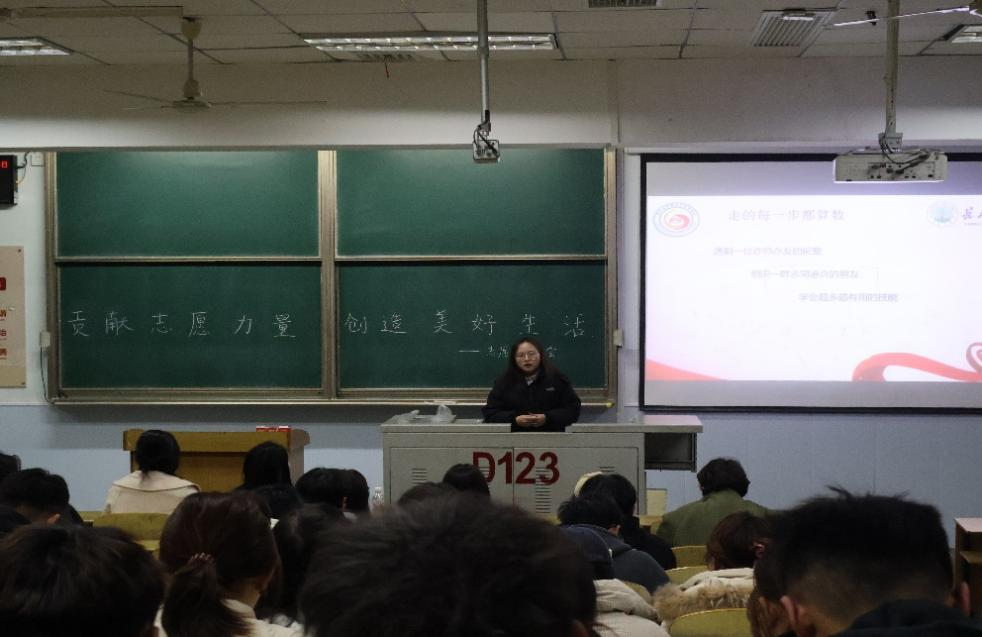 接下来,由志愿者代表覃乐乐、徐雨馨发言,分享她们在志愿服务中的亲身经历与深刻感悟。她们采用PPT的方式,呈现出过往志愿服务的丰硕成果,让在场的每一个人都深切感受到了志愿服务的魅力与价值。她们向同学们分享自己的服务经验与收获,强调坚持与积累在志愿服务中的重要性,并动员大家积极参与其中,为社会奉献爱心,同时结交志同道合的朋友,共同进步。