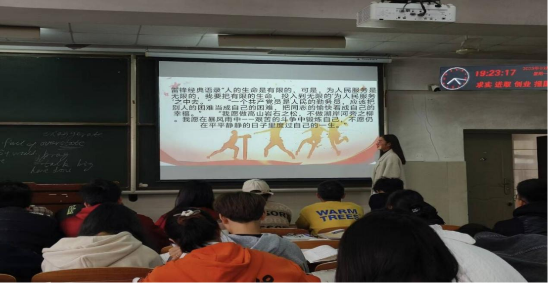 团会活动第二项,学习雷锋精神与志愿服务理念,各团支书带领团员们学习雷锋精神的时代价值,号召青年学生提高自身思想道德素质,增强社会责任感,传承雷锋精神,弘扬向善向上正能量。