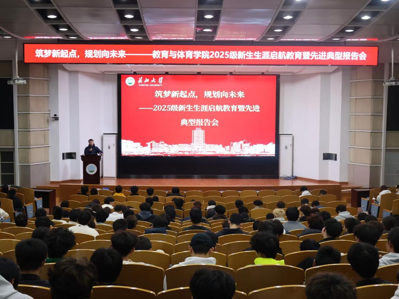 【通讯员 曾杉 杨雅月/文 谷世家 唐鑫/摄】为帮助2025级新生明确大学目标、规划成长路径,11月7日晚19时许,球王会体育平台网页2025级新生生涯启航教育暨先进典型报告会在12教405报告厅举行。本次会议由兼职辅导员金楚悦主持,学生就业工作处处长徐波、学院党委书记于永伟、院长张艳红、副院长杨青宝、宋永晶、汪阳帆、党委副书记何可可、院长助理严磊以及优秀学生代表、2025级全体新生参与。
