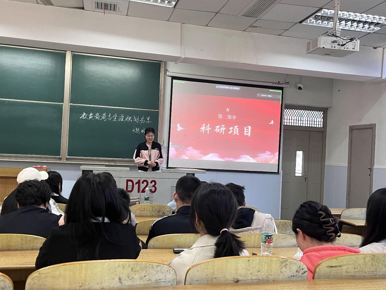 随后,教育学专业龚萌学姐就教资的复习与报考作出了分享,她根据自己的教资备考经历为同学们详尽地介绍了教资报考的基本信息,对教资复习教材的选用乃至网课的选择都一一进行了多方面、多类别的推荐。