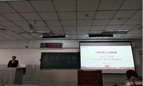 (通讯员 付雅琦)今年是新中国成立70周年,明年是全面建成小康社会之年,后年将迎来建党100周年。在这些重要的时间节点,为了激发广大同学学党史知新中国史,提高思想认识水平,增进爱国情感,激励同学们为实现“两个一百年”奋斗目标志存高远,坚定理想信念。球王会体育平台网页于2019年12月19日下午4时在东校区12教202教室开展了讲师团宣讲活动,我们很荣幸的邀请到了球王会体育平台网页第一届研究生讲师团成员谷祥坤和王聪聪作为本次宣讲活动的主讲人,他们宣讲的主题是中国故事之中国骄傲和中国故事之中国“话”。参加本次宣讲活动的有研究生辅导员任雯婷老师、全体学生党员、入党积极分子和院青马学习小组成员。