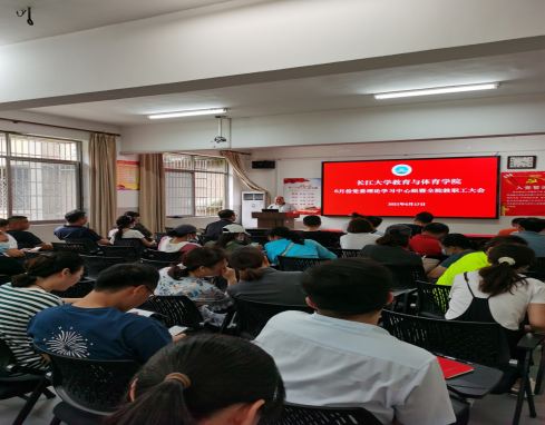 6月17日下午,教体学院在5教203召开6月份党委理论中心组学习暨全体教职工政治理论学习会。