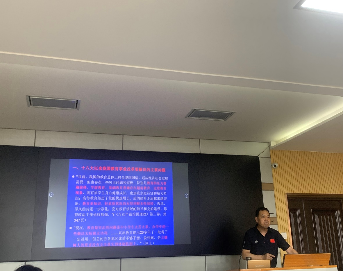 会议伊始,袁珂同志带领全体党员重温了入党誓词,随后,院长张相乐同志带领大学学习“十八大以来我国教育发展的问题、措施及成就”的教育党课,激励党员同志们为把我国建成教育强国、科技强国、人才强国、文化强国、体育强国、健康中国贡献出自己的一份力量。