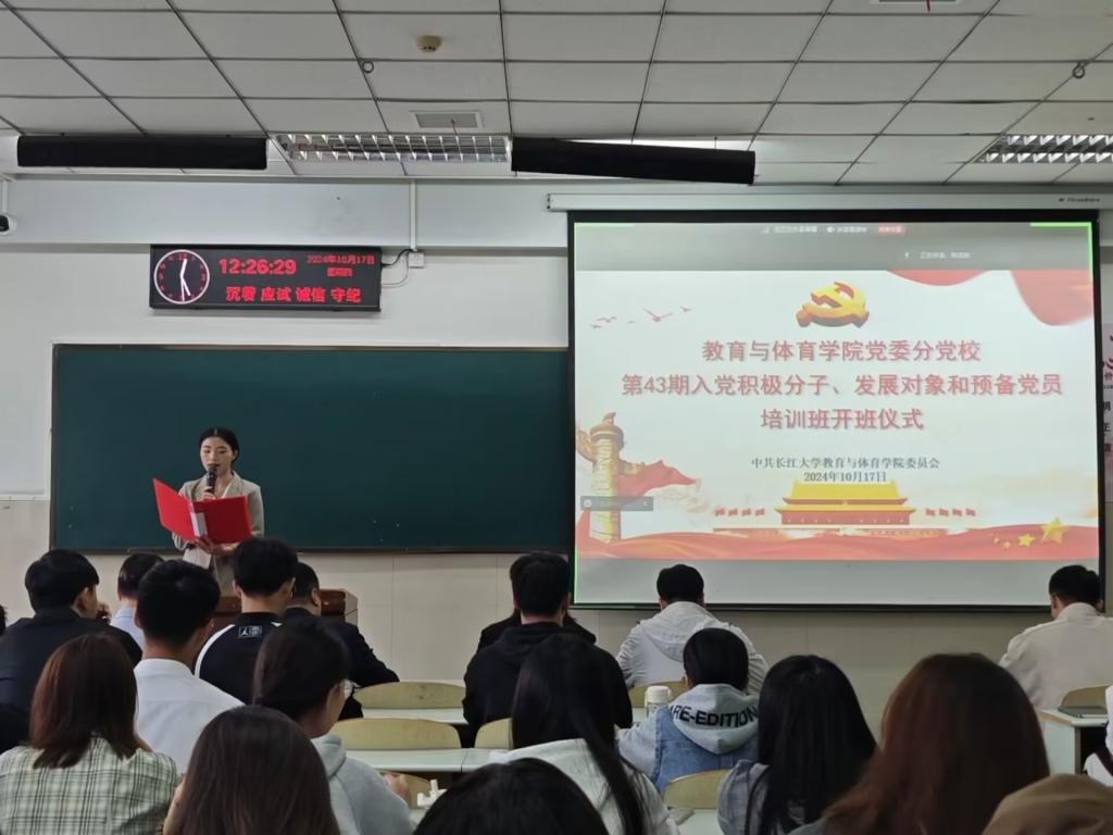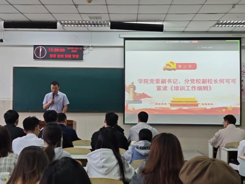 【通讯员 王梦媛/文 王雅妮/摄】赤旗飘扬映碧空,党心凝聚启新程。球王会体育平台网页于10月17日12时30分在12教301举行分党校第43期入党积极分子、发展对象和预备党员培训班开班仪式暨第一次专题党课,开班式由辅导员陈佳琳主持,学院党委书记、分党校校长于永伟、学院党委副书记、分党校副校长何可可、各党支部书记及全体学员参加。