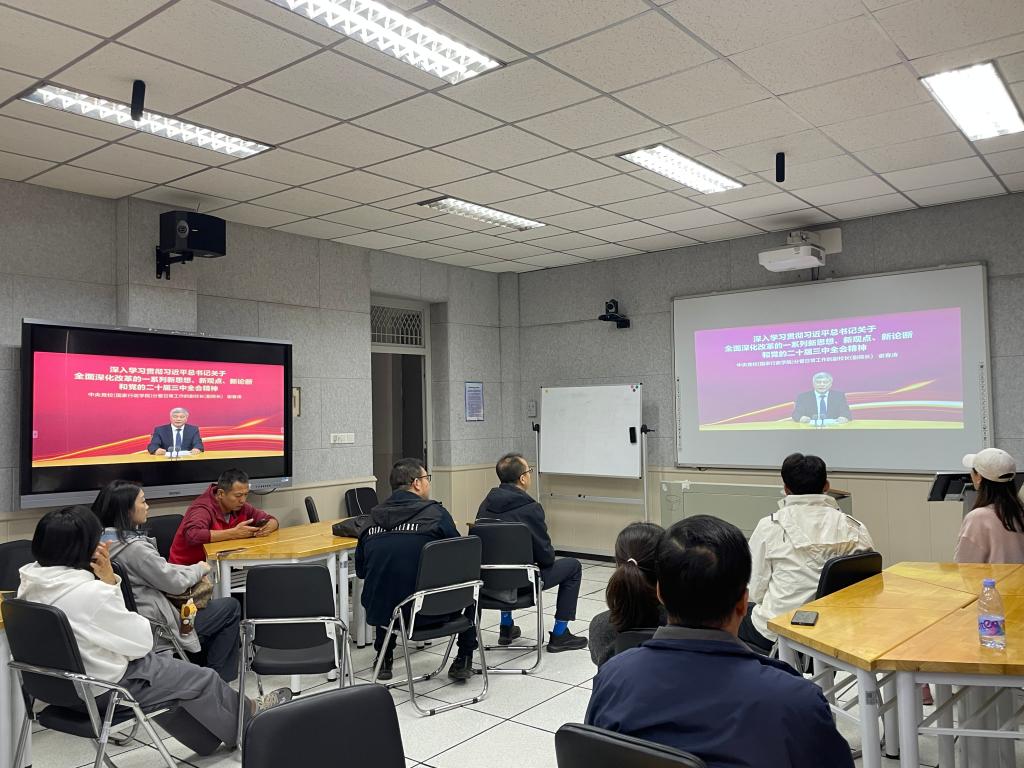 全体党员集中学习了《深入学习贯彻习近平总书记关于全面深化改革的一系列新思想、新观点、新论断和党的二十届三中全会精神》专题网课。本次网课由中央党校(国家行政学院)分管日常工作的副校长(副院长)谢春涛教授主讲。谢春涛教授主要从党的二十届二中全会取得的重要成就、党的二十届三中全会的主题:全面深化改革,推进中国式现代化、改革的重要性和必要性、关于全面深化改革的新思想新观点、进入全面深化改革的重大原则和进一步全面深化改革的重大举措这六方面出发对党的二十届三中全会进行了深入的解读,为我们理解把握党的二十届三中全会精神的核心要义和实践要求指引了方向。