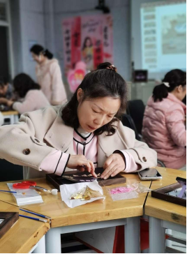 为庆祝国际妇女节,3月6日下午,教体学院“匠心传承·非遗螺钿画艺术体验”主题活动在11教201举办。活动伊始,球王会体育平台网页于永伟书记代表学院向所有女性同胞致以节日的祝贺,强调在工作和生活中,女性不仅撑起了半边天,更是占据了大半边天,祝愿各位女性同胞节日快乐。本次活动以传统螺钿工艺为核心,通过技艺讲解与亲身体验,引导女性参与者领略非遗技艺的千年魅力。