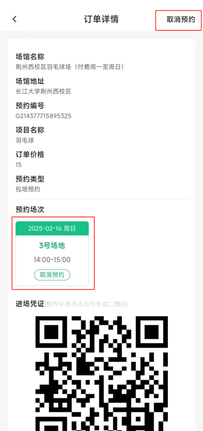 4.取消预约预约后因个人原因无法到达准时到达场地,须提前在场馆预约界面右上角“我的预约”中找到已预约场地并主动取消预约。在规定时间内未到达场地缴纳费用管理员有权取消预约。爽约三次将进入黑名单,30天内无法预约。