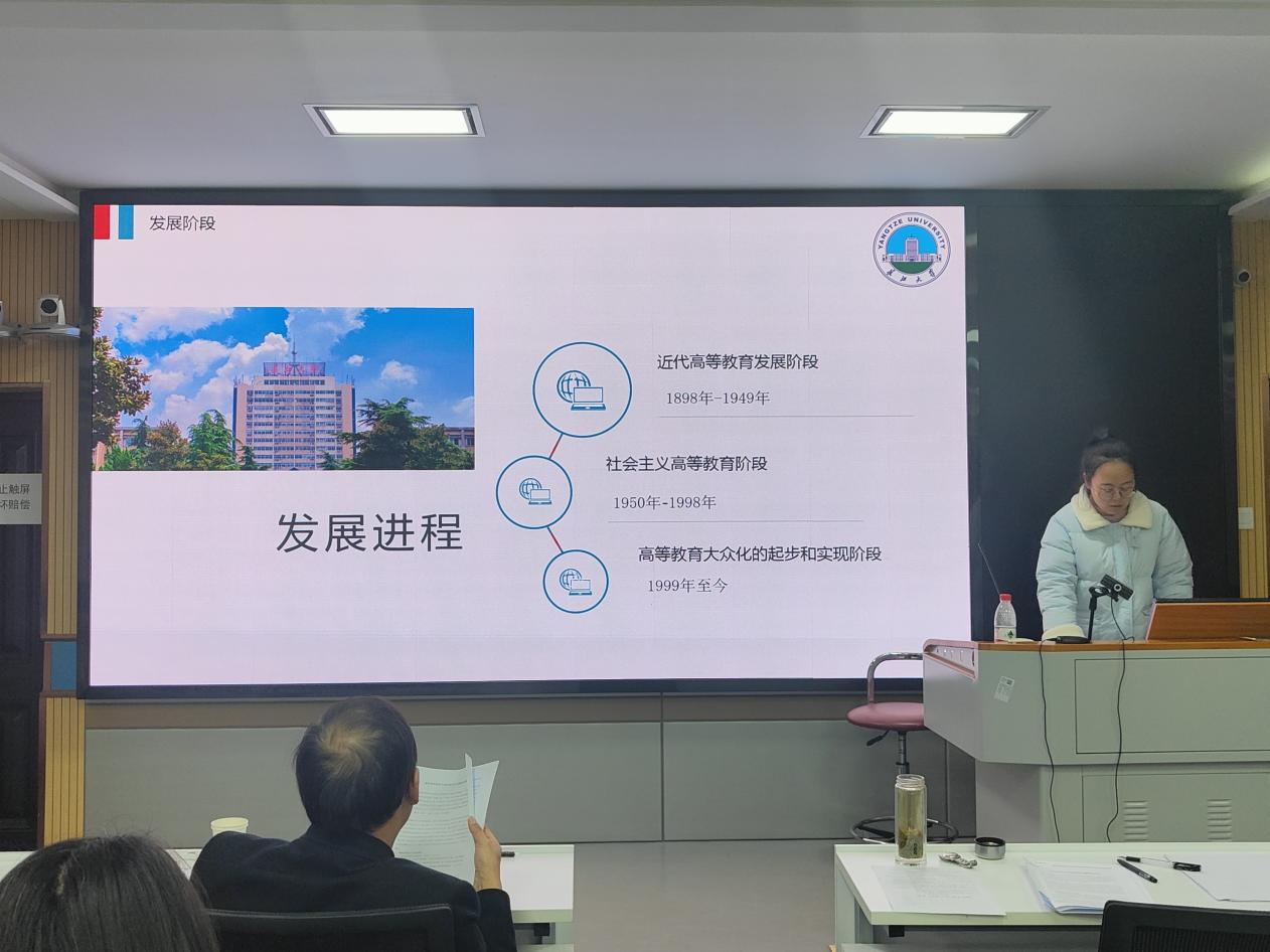 谭德平汇报了我国高等教育发展进程及其问题和对策研究,她介绍了我国高等教育发展的三个阶段,重点探讨我国高等教育大众化到普及化这段历程,针对高等教育发展过程中出现的问题进行研究。