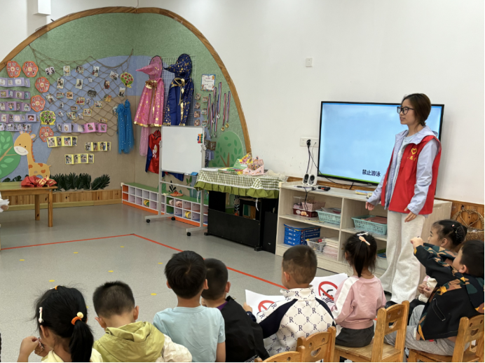 【通讯员 高炎/文 沈雨晨/摄】为提升幼儿防溺水安全意识,增强自我保护能力,4月24日下午3时许,球王会体育平台网页学生会实践部,在天井渊社区罗园灵巧幼儿园开展“大手牵小手,防溺护童行”安全教育活动。