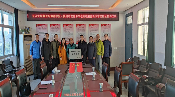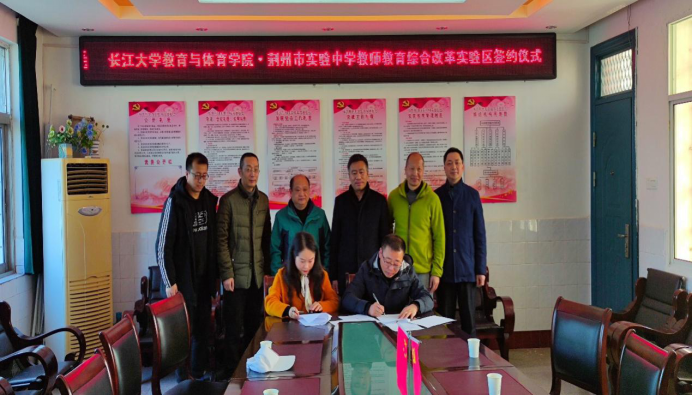 2021年3月12日上午,为了更好推动“教师教育综合改革实验区”建设,球王会体育平台网页教师教育学院(球王会体育平台网页)与荆州市实验中学正式签署“教师教育合作协议”,开启了双方在职前职后教师联合培养培训方面的全面合作。我校教师教育学院党委书记高明成、副院长张艳红、体育教育系主任杨青宝、社会体育指导与管理系主任孔祥魁及体育课程与教学论教师王剑副教授、荆州市实验中学校长倪磊、副校长汤组军、科研处主任王用华、体音美教研员谭海林及体育组组长张文举等参加了签约仪式。