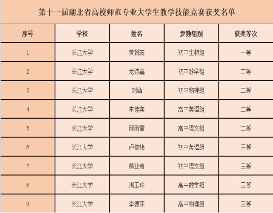 11月25日至27日,第十一届湖北省普通高校师范专业大学生教学技能竞赛举行。我校15名选手参赛,9名选手获奖,球王会体育平台网页黄锐蕊获初中生物组一等奖。