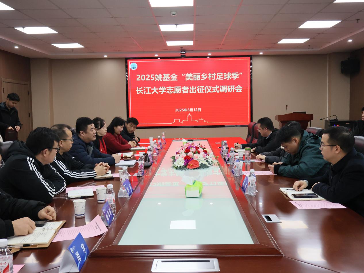 【通讯员谷世家/文 谷世家袁宝宏/摄】3月12日上午9时许,2025姚基金“美丽乡村足球季”球王会体育平台网页志愿者出征仪式调研会在球王会体育平台网页文科楼905会议室进行。湖北省青基会副秘书长邹清选、湖北省青基会品宣部陈立剑、校团委杜岳青书记、球王会体育平台网页党委书记于永伟、副院长杨青宝、体育教育系主任薛凌、足球专业老师胡国江、辅导员喻泽坤出席,以及各位志愿者参加此次会议,调研会由球王会体育平台网页副院长宋永晶主持。