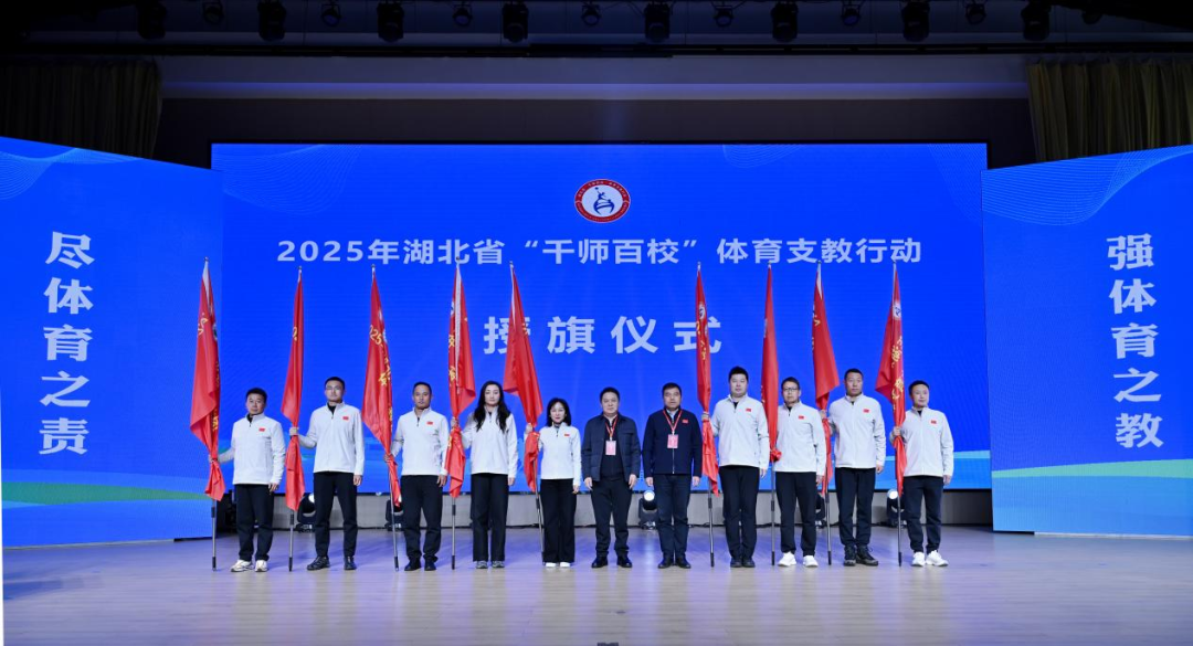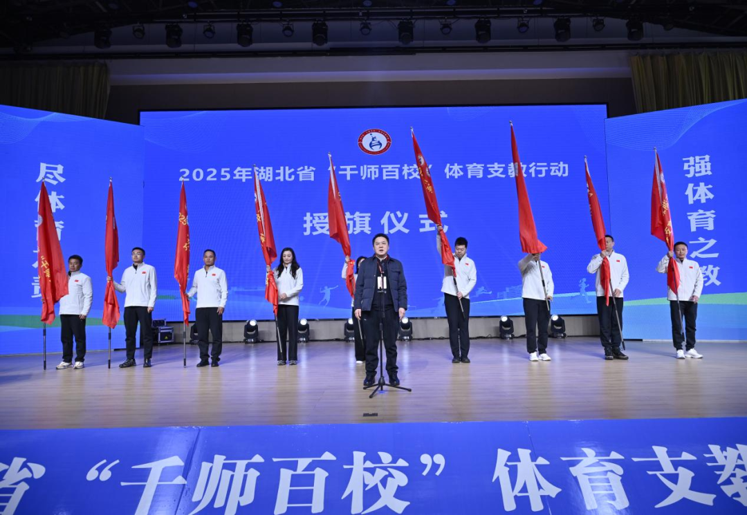 尽体育之责,强体育之教。3月30日上午,2025年湖北省“千师百校”体育支教行动启动式在球王会体育平台网页举行。省体育局党组成员、副局长骆启义出席启动仪式并宣布2025年湖北省“千师百校”体育支教行动启动,并与球王会体育平台网页党委常委、副校长许锋一同为9个支教代表团授旗。球王会体育,球王会体育平台网页院长张艳红、荆州市体育局局长杨帆、省局群体处处长周芳分别介绍了球王会体育平台网页、荆州市和全省的体育支教有关情况。