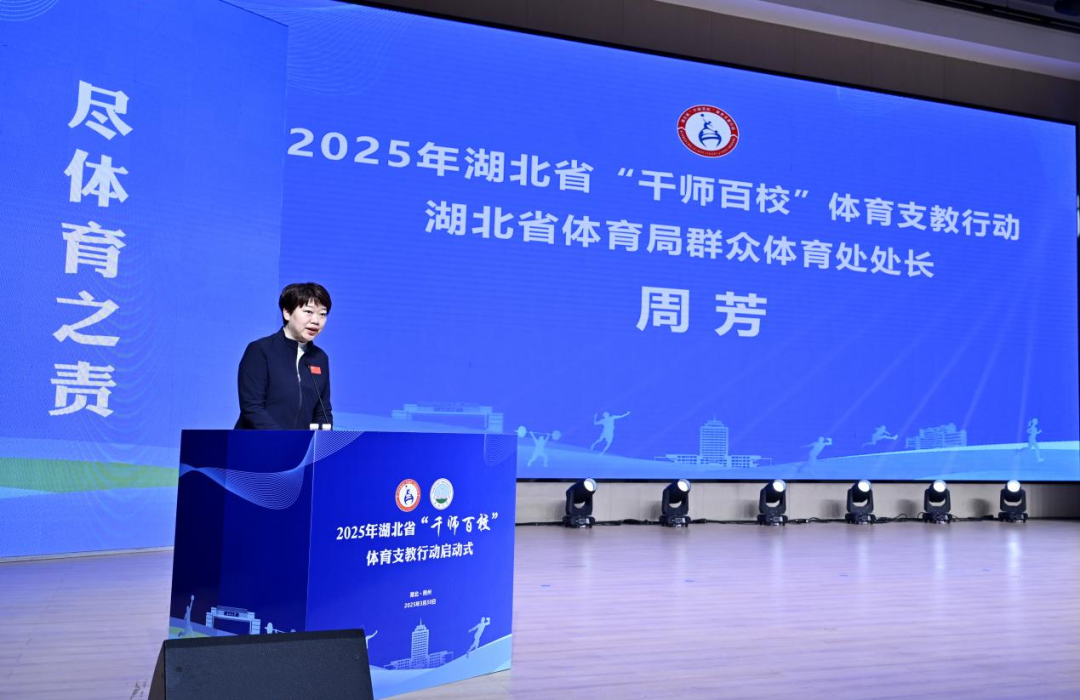 省局群体处处长周芳表示:省体育局积极响应、深入贯彻国家体育总局体育支教部署安排,坚持“尽体育之责、强体育支教”理念,以前所未有的信心和决心,创新谋划、持续实施湖北省“千师百校”体育支教行动。2025年省体育局将统筹省内高校体育教育资源,按照“一主两辅”的模式(以优秀在读体育专业大学生为主,体校和社会俱乐部教练员为辅),招募1000名优秀志愿者,到全省16个市州的200所基层学校或体校,开展体育支教活动。